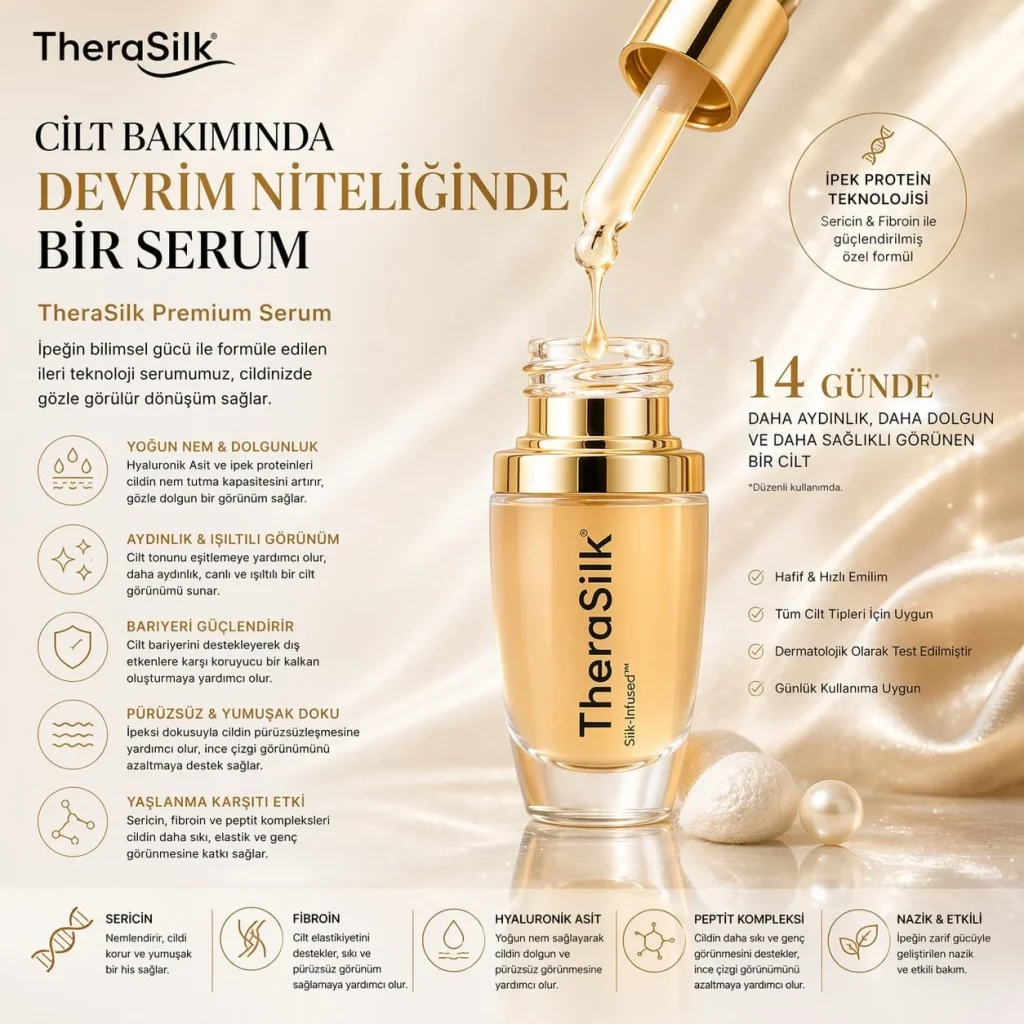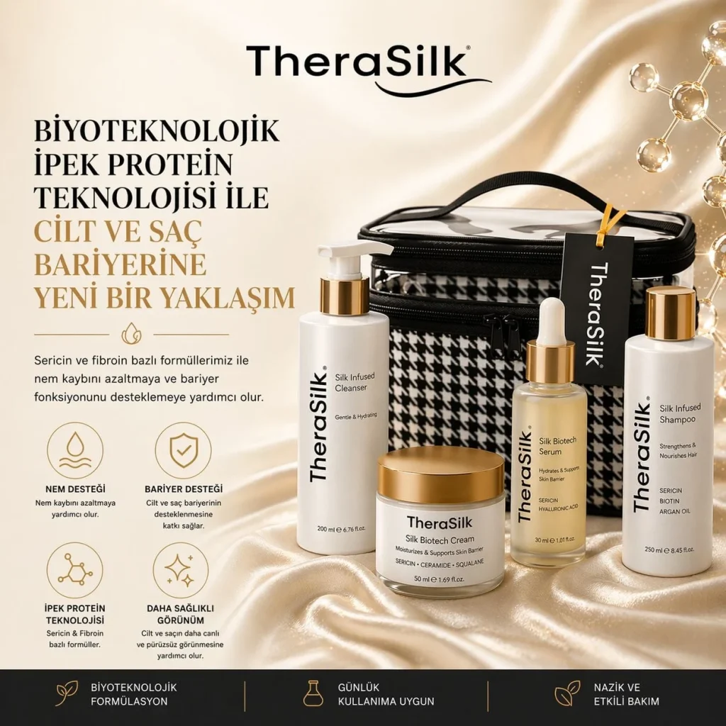 Therasilk, ipeğin büyülü dünyasından ilham alarak, lüks kozmetiği yeniden tanımlıyor. Her ürün, yalnızca cildinize değil, aynı zamanda ruhunuza da dokunan eşsiz bir deneyim sunuyor. İpeğin yumuşaklığı ve gücü, modern biyoteknolojinin sihirli dokunuşuyla birleşerek, her biri sizi zarafetin ve yenilenmenin zirvesine taşıyan formüllere dönüşüyor.